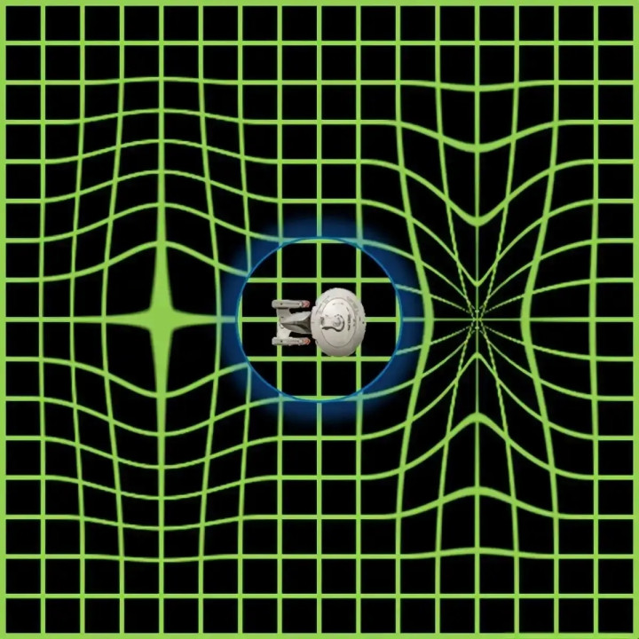 形象地说,曲速引擎就像让飞船 “站在时空的波浪上”,时空本身的膨胀和收缩带着飞船前进。此时,飞船的 “表观速度” 可以远超光速,但实际速度并没有突破光速,因此不违背相对论。
